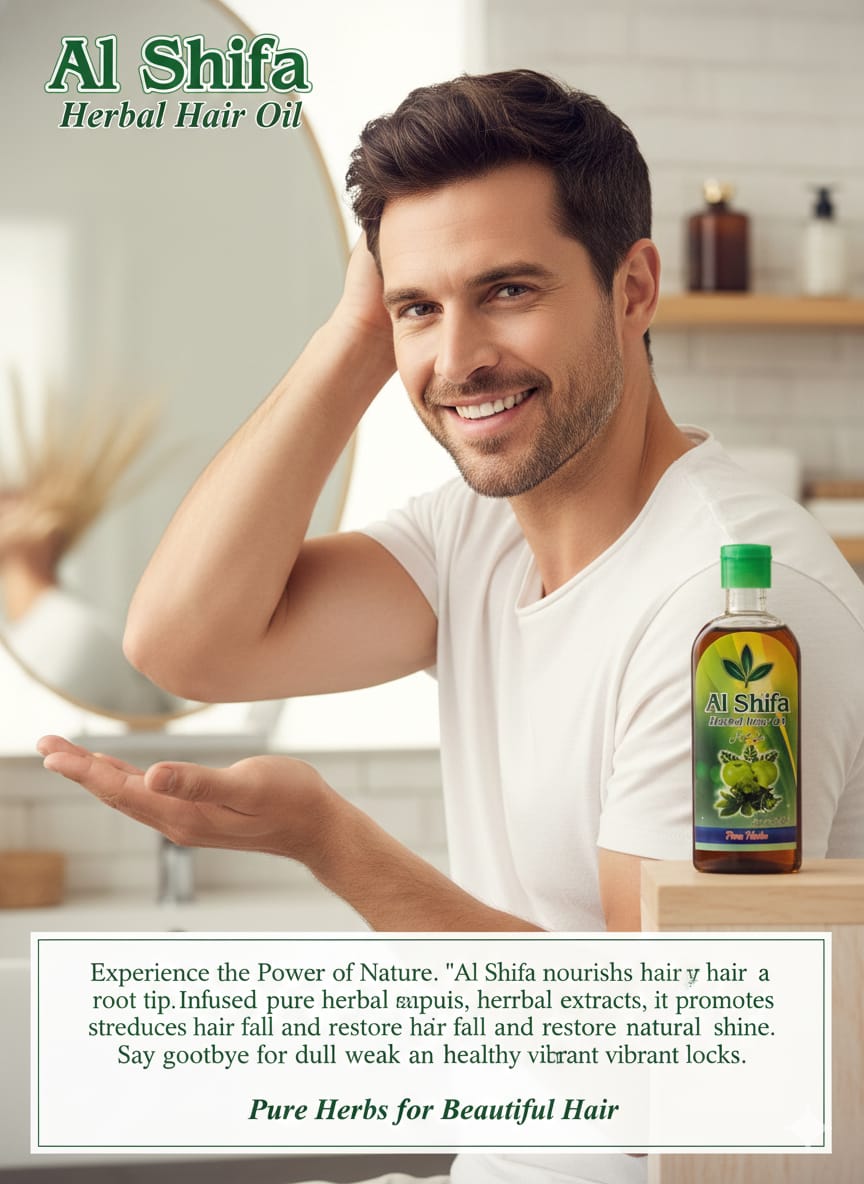 Al Shifa Herbal Hair Oil is a trusted herbal solution for weak, thin, and damaged hair. Its rich herbal ingredients penetrate deep into the scalp, improving blood circulation, reducing hair fall, and restoring natural shine. Regular use helps achieve stronger, thicker, and healthier hair naturally.