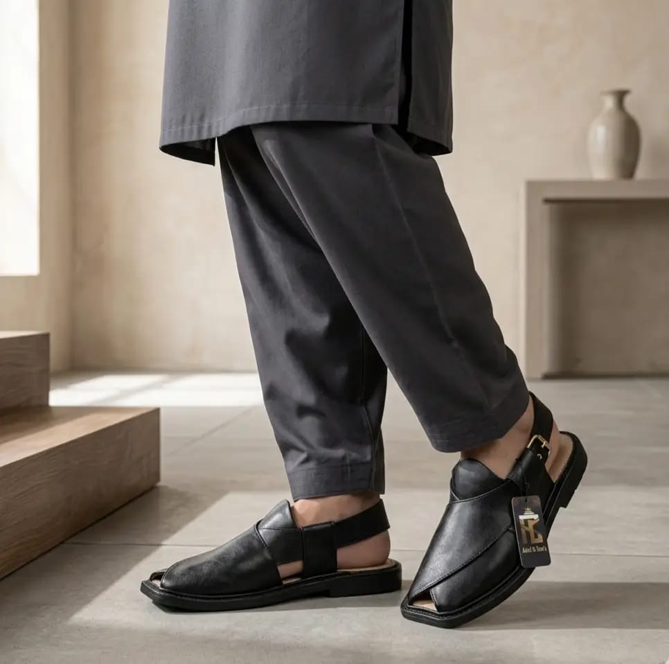 Step into tradition with the Hand-Stitched Classic Black Peshawari Chappal—a perfect blend of heritage, craftsmanship, and enduring style.